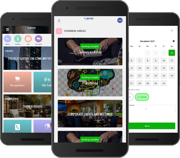Mosino One Platform includes various digital concierge services that provide value, improve efficiency and create customer engagements. Each component allows customers to request and reserve room services through the application. Automatic access is granted to each room if the customers opts in, which removes the need to manage access for customers. Customer feedback option also allows managers to measure satisfaction.