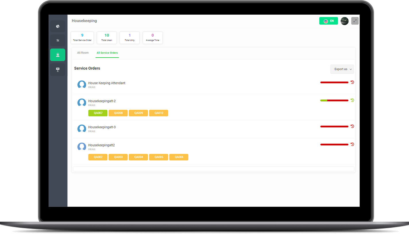 Housekeeping module allows automatic service order creation while considering any business rules.