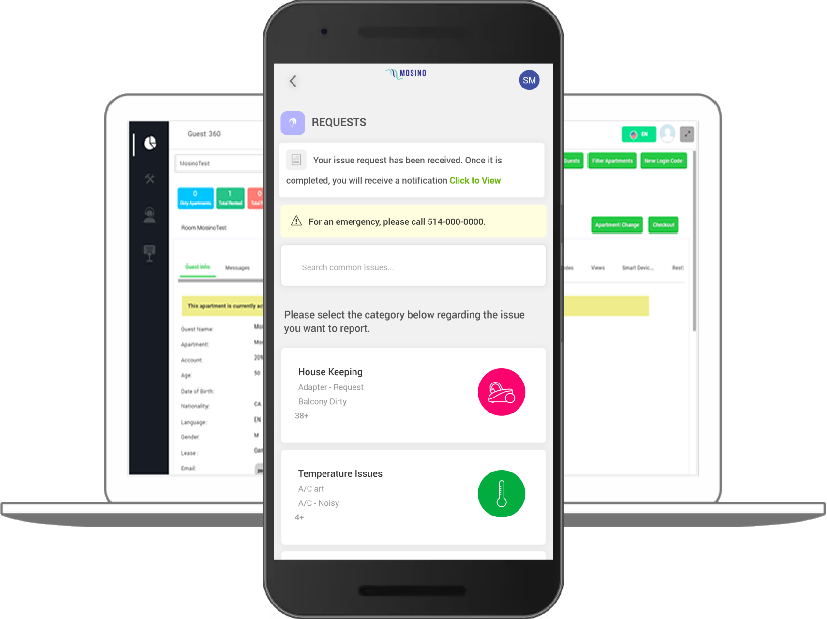 Mosino's Hospitality platform dispatches all customer requests to the appropriate staff teams and keeps the guests in the loop. From room service to housekeeping requests and issue notifications, needs can be taken care of directly without having to route through the front desk. This feature, along with status updates and real-time notifications, leads to fewer calls to the front desk and more attentive customer service.