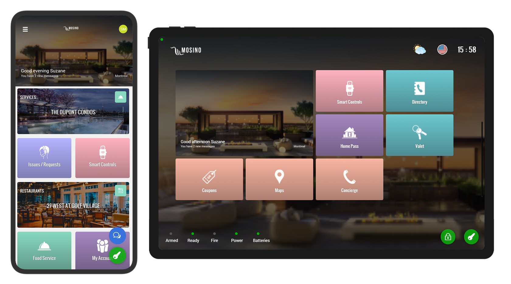 Mosino One Platform includes various digital concierge services that provide value, improve efficiency and create customer engagements. Each component allows customers to request and reserve room services through the application. Automatic access is granted to each room if the customers opts in, which removes the need to manage access for customers. Customer feedback option also allows managers to measure satisfaction.